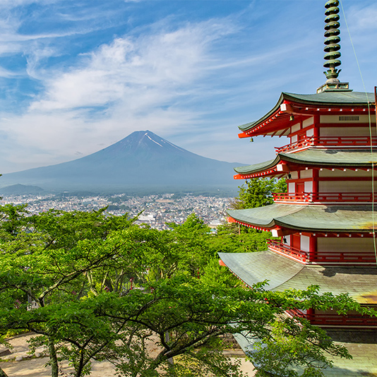 Пагода Чурейто с завораживающим и самым известным видом на Фудзи. Пагода - символ и, пожалуй, одна из самых популярных “картинок” Японии.